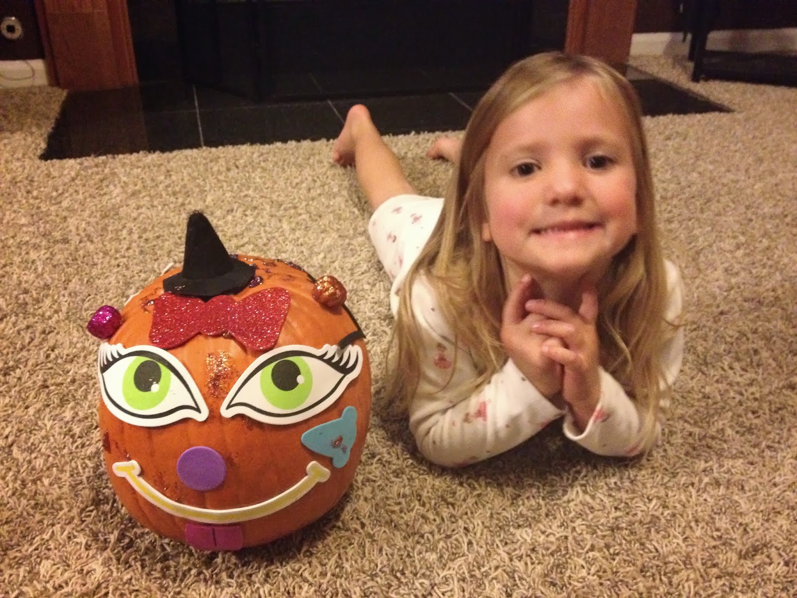 October 20: A BIG thanks to Aunt Nee Nee for supplying us with so much fun pumpkin decorating supplies. Sadie had a blast going on a shopping spree to help pick out fun things for this project. Also--Thanks to Grandma Janet for buying pumpkins for the kids. We had an awesome family fun night (and this is much less messy than carving pumpkins!)